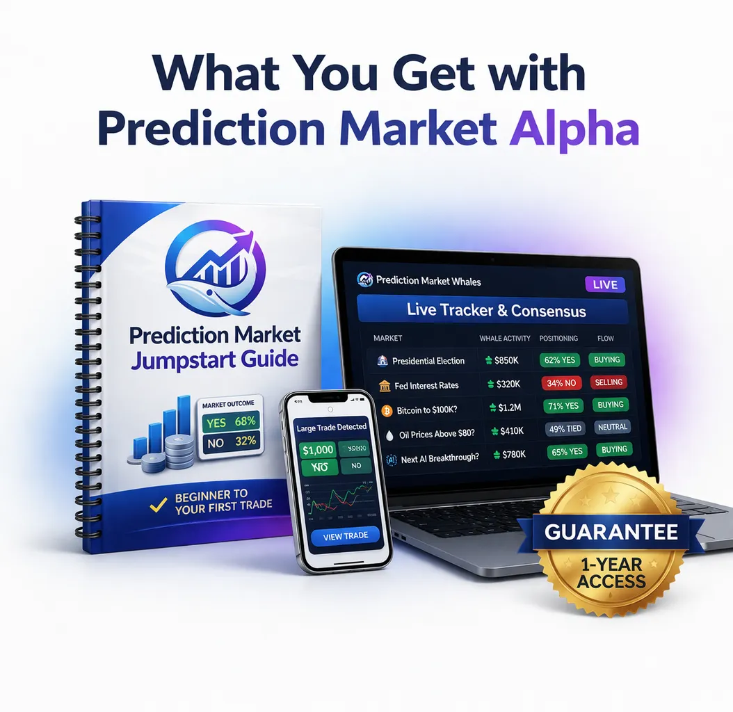 1‑Year Access to Prediction Market Whales – Full, uninterrupted access to the platform, so you can go from watching, to understanding, to executing.